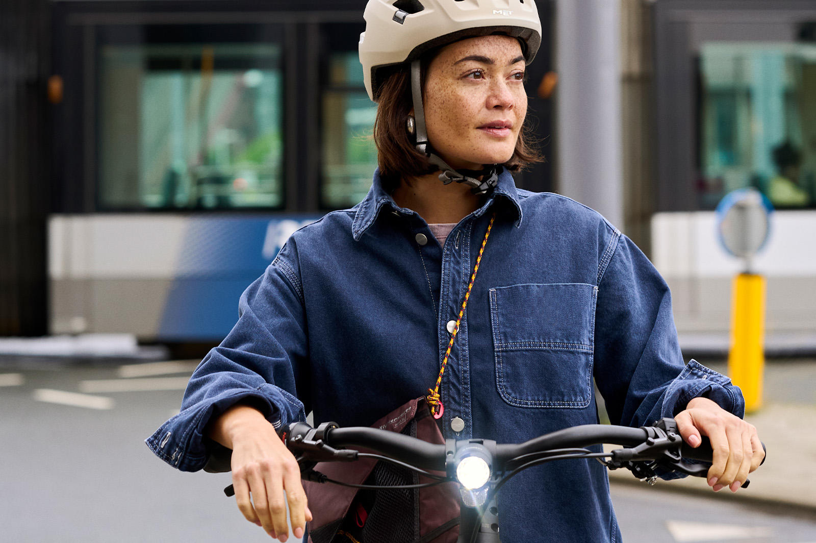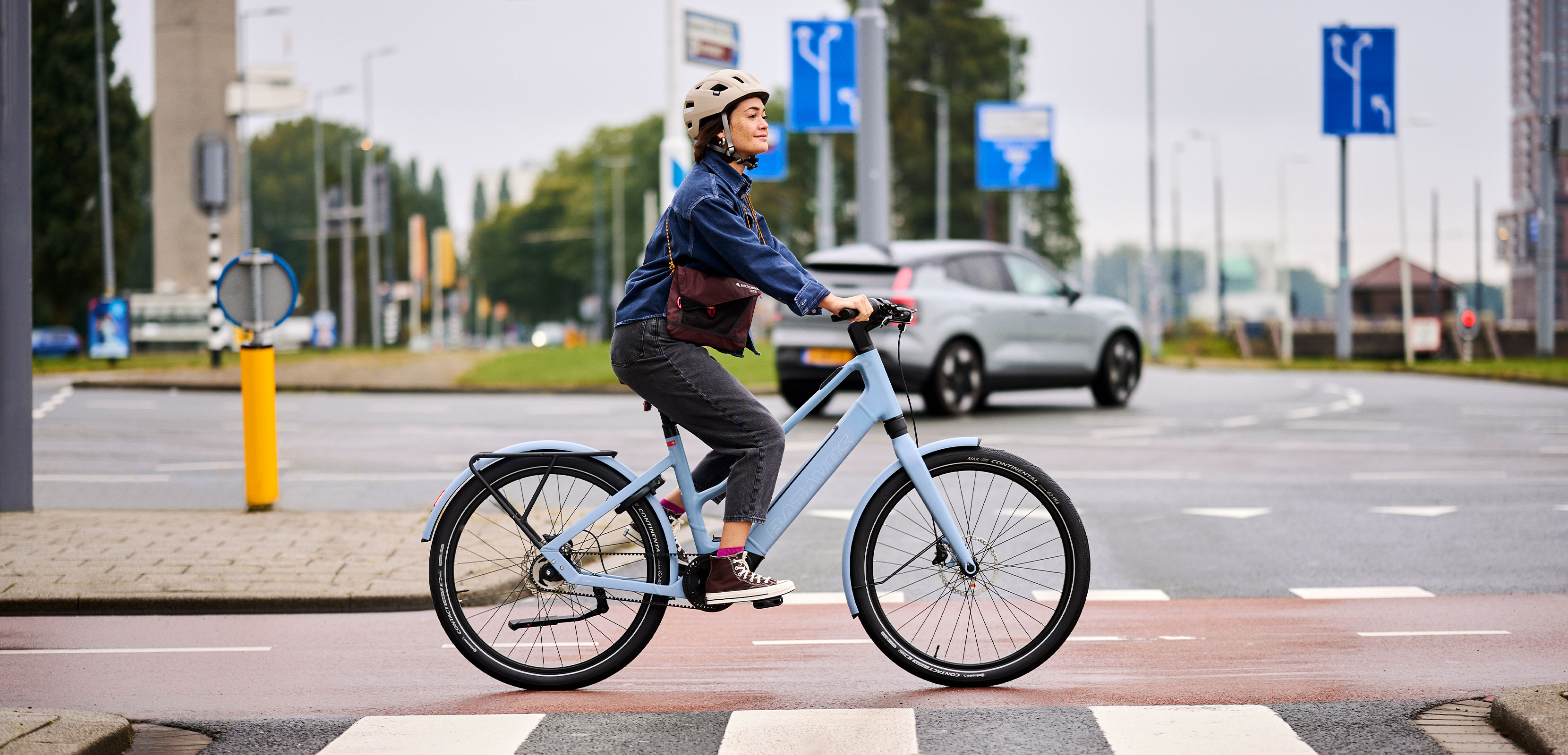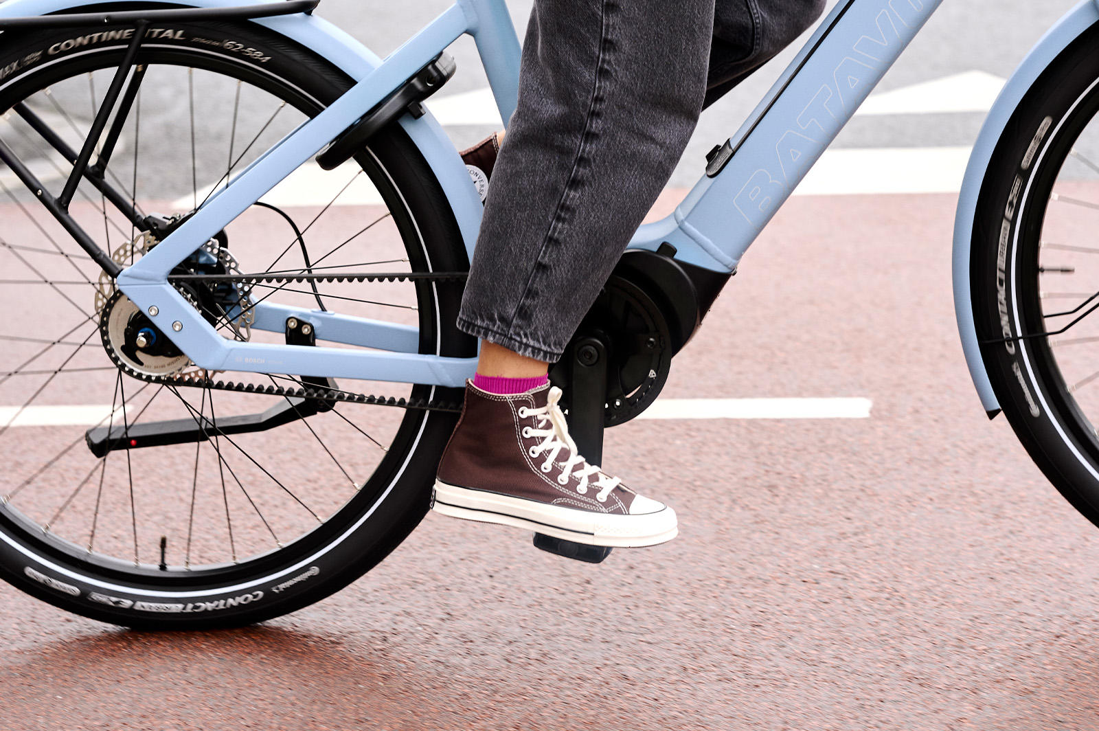 Het is donker in de ochtend en in de avond valt de schemer steeds vroeger. Check voordat je vertrekt je verlichting en zorg ervoor dat je goed zichtbaar bent. Met Batavus V-Light ben je nog beter zichtbaar voor achteropkomend verkeer. Batavus V-Light is een rood licht in de vorm van een V, dat vlak achter je op de grond te zien is. V-light zit op de e-bikes van Finez en de Fier bakfiets.